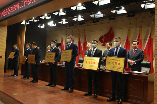 宣读了经开区《关于表彰2021年度先进集体和先进个人的决定》《关于命名表彰社会主义精神文明建设先进单位的决定》,并现场进行颁奖。
